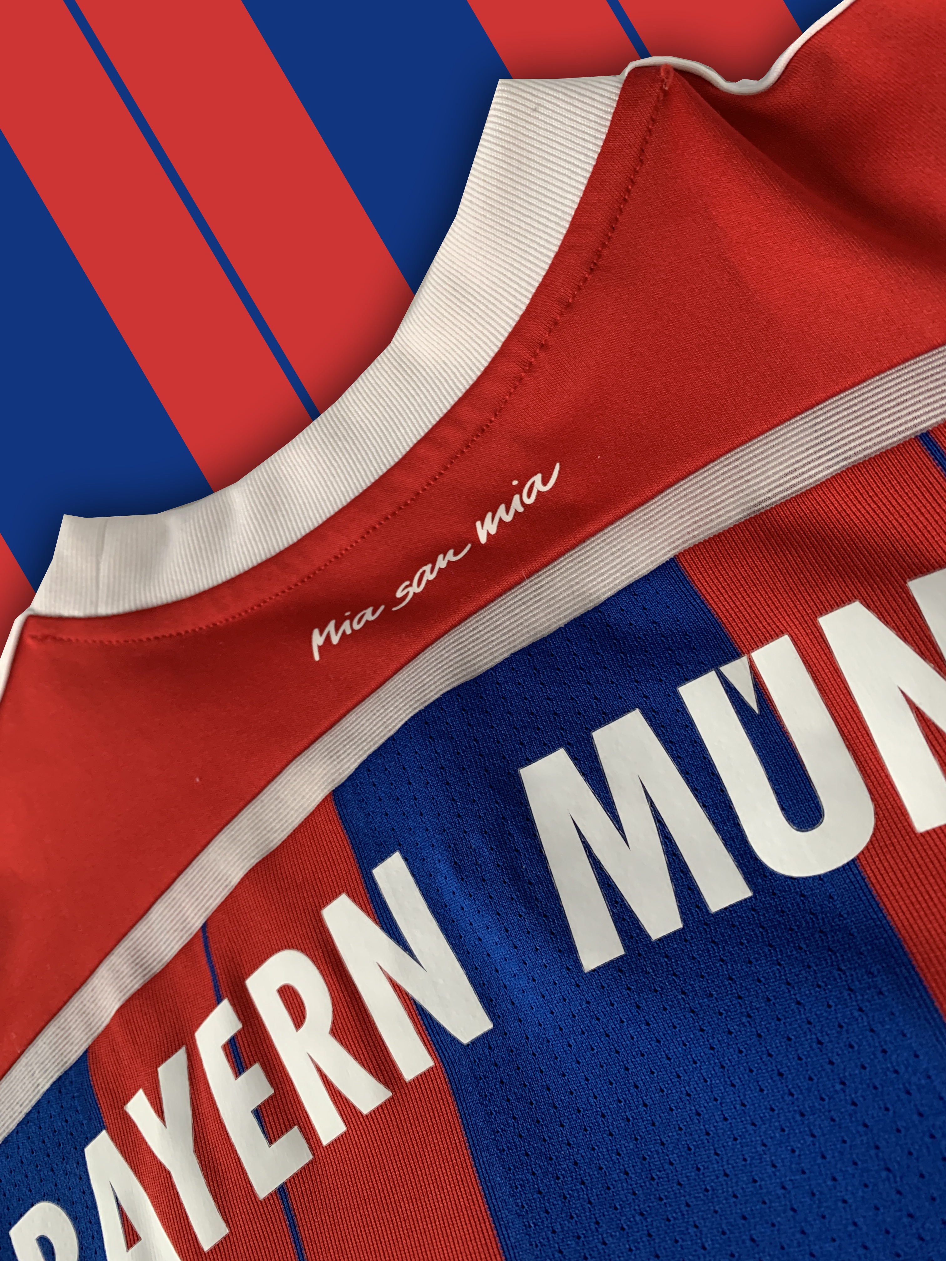 Kidding. It’s actually a homage to their shirt from 95/96, the year they won the UEFA Cup. 1995 was also the year Bayern started printing the player names at the bottom of the shirt, below the club name and that order is not a coincidence. Bayern’s president, Uli Hoeneß, made it clear that while players may come and go, the club will always stay, which is why it gets top billing.