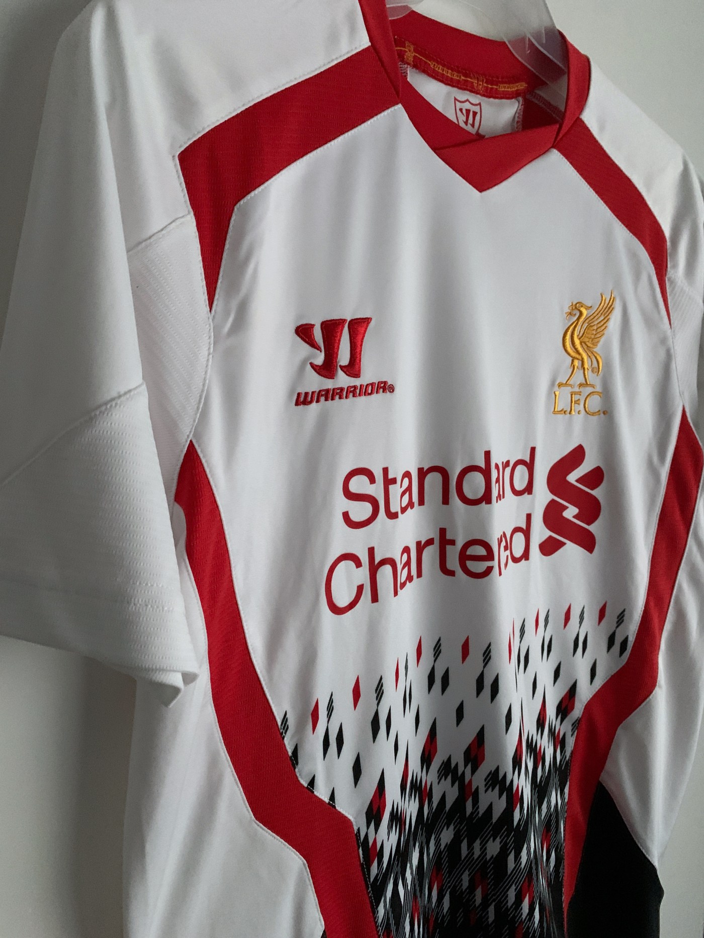 I’ve dispatched my 95/96 Liverpool goalkeeper shirt for a start. I mean, I love the shirt, but to any outsider it looks like a magic eye painting viewed after taking some weapons grade LSD. I’ve also dispensed with Liverpool’s 12/13 third shirt, the one with the tribal graphics on the sleeves, which I’m glad about, because the coat I wear easily covers up the embarrassing parts of that kit. It’s why I was also glad when this shirt got picked- Liverpool’s 13/14 home.
