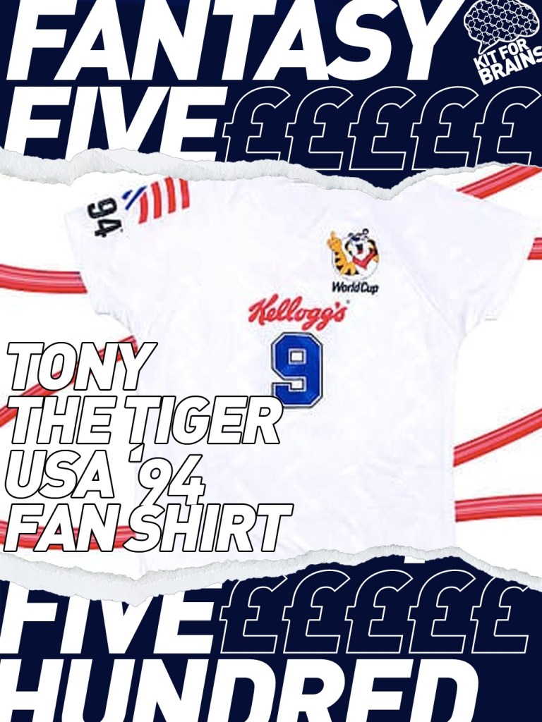 Right, I’m not sure if it’s just the resolution of the picture, but is Tony the Tiger flipping me off? I reckon things could get a bit tasty if you bumped into some Rice Krispie ultras while wearing this. You’d get a Frostie reception for sure. You’d probably soil your Shreddies. It’s interesting to know Tony the Tiger plays as a 9 too, making me wonder what a cereal mascot best XI would be.