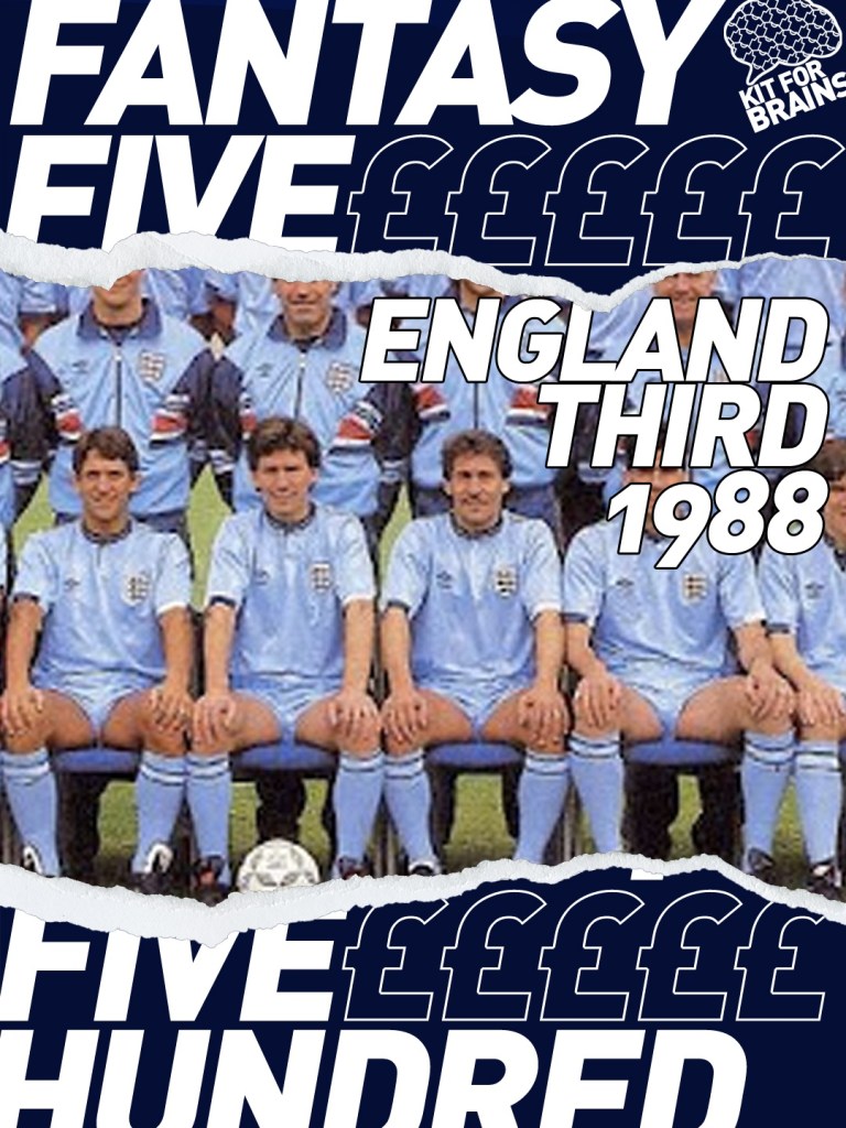 Now while the sky blue 1990 third shirt hogs the limelight, Asa has gone for the ‘88 England effort. It was never actually worn in a match, not even a friendly, which is a shame because the shadowed diamonds in the fabric look great. The rarity of this shirt though means that over half the budget has gone already!