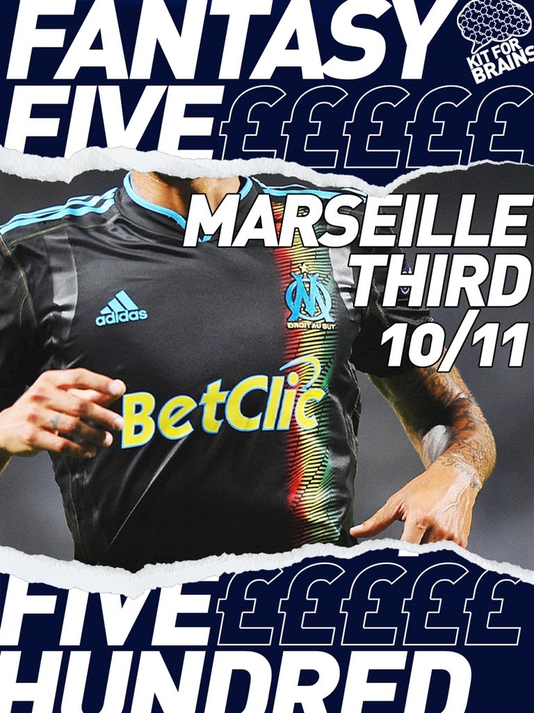 Now, long before Ajax had their Bob Marley third shirt, Marseille had this. Black, red, gold, green…and cyan. I know it’s traditionally a Marseille colour but could they not have left it off just this once? Still, this is a bargain shirt.